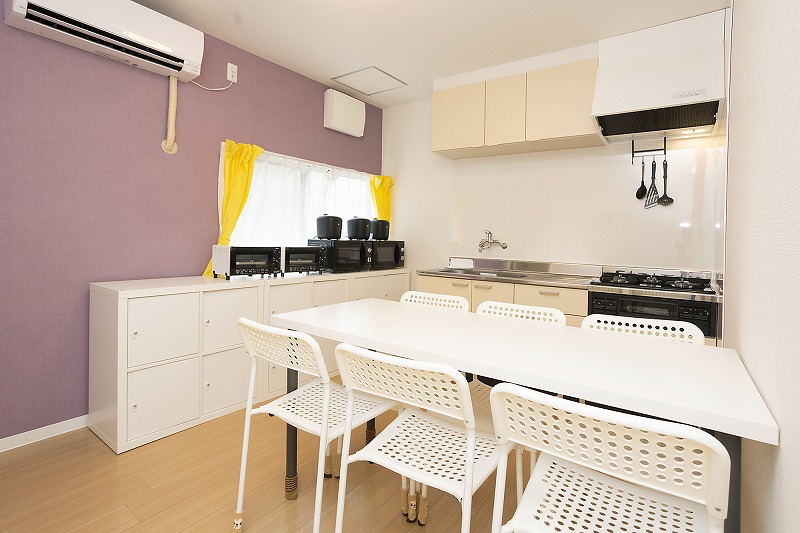| 共用設備 | キッチン、コンロ、電子レンジ、オーブントースター、炊飯器3つ、食器各種、リビング器具一式、トイレ2つ、洗濯機2つ、シャワールーム2つ